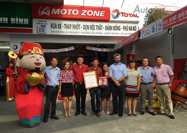 Total Việt Nam đã kết hợp cùng 2T car care thành lập trung tâm motozone chuyên thực hiện các dịch vụ chăm sóc và bảo dưỡng cho các loại xe. Motozone toạ lạc tại địa điểm 596 Luỹ Bán Bích, P. Hoà THạnh , Q. Tân Phú. Motozone có diện tích 120m2 với nhiều thiết bị chuyên dụng nhằm vụ phục chu đáo nhất mọi nhu cầu của khách hàng.