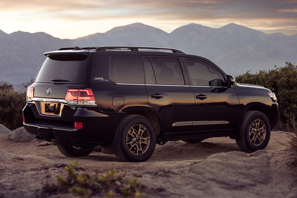 So với bản tiêu chuẩn, Land Cruiser Heritage Edition có lưới tản nhiệt với các chi tiết trang trí màu đen, mâm nhôm đúc TRD 18 inch màu đồng do BBS thiết kế, kết hợp lốp Dunlop AT23. Ngoại thất có 2 tùy chọn màu sơn Midnight Black Metallic và Blizzard Pearl.