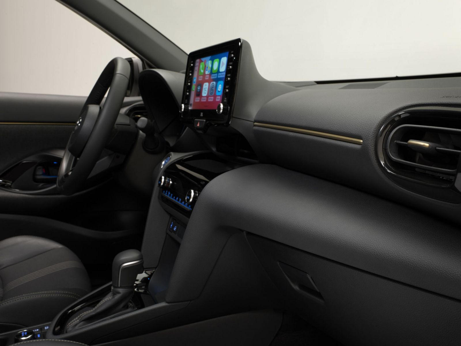 Bên trong, khoang cabin màu đen, ghế ngồi bọc da, các đường trang trí màu vàng trên bảng điều khiển và các đường gờ 2 bên cửa xe. Nếu tùy chọn biến thể Yaris Cross Adventure Premiere Edition cao cấp nhất chiếc xe có thêm toàn bộ cabin bọc da, cửa cốp tỉnh điện mở bằng thao tác đá chân, màn hình Head-Up, tùy chọn la-zăng hợp kim 18 inch độc quyền.