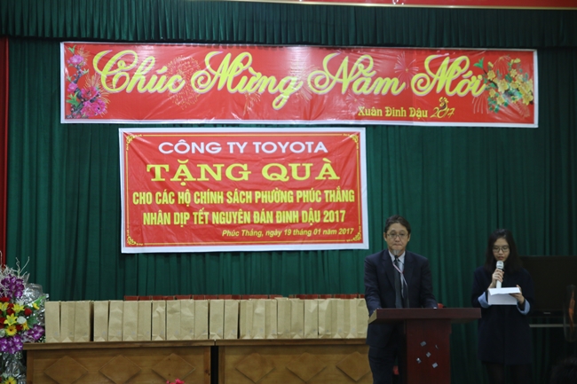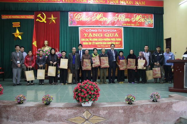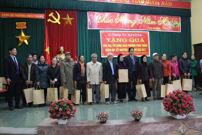 Tại buổi lễ, ông Toru Kinoshita – Tổng Giám đốc TMV đã trao tặng 50 suất quà Tết (mỗi phần quà trị giá 500.000 đồng), bao gồm: 49 suất quà Tết cho các gia đình thương binh liệt sỹ và 1 suất quà Tết cho Hội người cao tuổi của phường Phúc Thắng, thị xã Phúc Yên, tỉnh Vĩnh Phúc. Đây là một trong những hoạt động có ý nghĩa được TMV tổ chức thường niên kể từ năm 1997, phần nào mang đến cho các gia đình chính sách tại địa phương có một cái Tết ấm áp hơn và đầy đủ hơn.