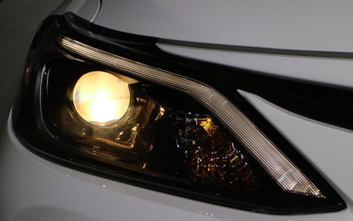 Đầu xe có đèn pha mới dạng thấu kính với chóa đèn bên trong màu tối, dải LED chạy ban ngày, khung đèn định hình bằng đường crôm dạng chữ C. Lưới tản nhiệt phía trên trông dữ dằn và thể thao hơn với dạng chữ T thay cho thanh ngang của phiên bản hiện tại. Trong khi đó lưới tản nhiệt phía dưới thừa hưởng từ Camry với kiểu đèn sương mù gắn ở góc.