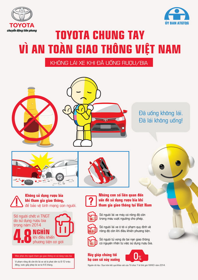 Chương trình “Toyota chung tay vì An toàn giao thông Việt Nam” được triển khai với hoạt động khởi đầu là Chiến dịch truyền thông nâng cao nhận thức cho người tham gia giao thông nhằm, khuyến khích việc thay đổi hành vi của người điều khiển ô tô tại Việt Nam, tập trung vào 3 nội dung, gồm: "Không sử dụng điện thoại khi lái xe"; "Không lái xe khi đã uống rượu / bia", và "Thắt dây an toàn khi lái xe ô tô". Cụ thể, chương trình được triển khai với các hoạt động như sau:, Chương trình phối hợp với Đài tiếng nói Việt Nam (VOV) phát sóng liên tục các tiểu phẩm tuyên truyền về 3 nội dung "Không sử dụng điện thoại khi lái xe"; "Không lái xe khi đã uống rượu / bia", và "Thắt dây an toàn khi lái xe ô tô" trên kênh VOV Giao thông Quốc gia (91 MHz) trong khung giờ 8:00-8:30 và 18:00-18:30 hàng ngày (trong quý 1 năm 2016) tại Hà Nội và thành phố Hồ Chí Minh, hướng tới đối tượng trực tiếp là người điều khiển ô tô.