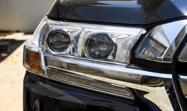 Land Cruiser 2016 có thiết kế mạnh mẽ góc cạnh hơn nhờ các chi tiết mạ crôm trên bộ lưới tản nhiệt dạng hình thang và mở rộng ra 2 bên liên kết với cụm đèn pha. Viền mạ crôm ở đèn sương mù.