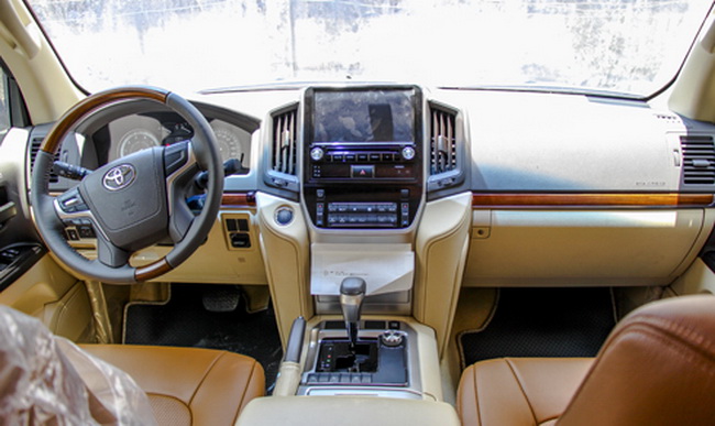 Mẫu SUV cỡ lớn của Toyota có 8 chỗ, nội thất màu da bò. Vô-lăng 4 chấu tích hợp hệ thống liên lạc. Màn hình 9 inch và trang bị các cổng, USB, AUX, Bluetooth. Hàng ghế sau khá rộng với hai màn hình 10 inch đặt trên tựa đầu. Cửa sổ trời.
