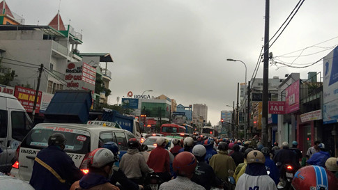 Đến 8 giờ 30, cơn mưa có vẻ dịu bớt nhưng dòng người kẹt cứng và các con đường ngập nước thì vẫn còn đó. Trục Cộng Hòa từ Hóc Môn, Gò Vấp về xe kẹt cứng nối đuối nhau.