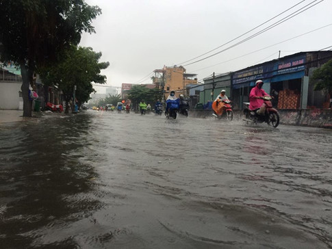 Khu vực quận 2 đường Lương Định Của, Huỳnh Tấn Phát (Q.7) nước đã lênh láng, phố cũng như sông.