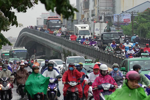 Mưa to buổi sáng, kết hợp với giờ cao điểm khiến phương tiện giao thông di chuyển rất khó khăn. Ngay giờ vào học của các em học sinh (6 giờ 30 đến 7 giờ 30), mưa to cực lớn xảy ra tại các quận Q.3, 5 và 11.