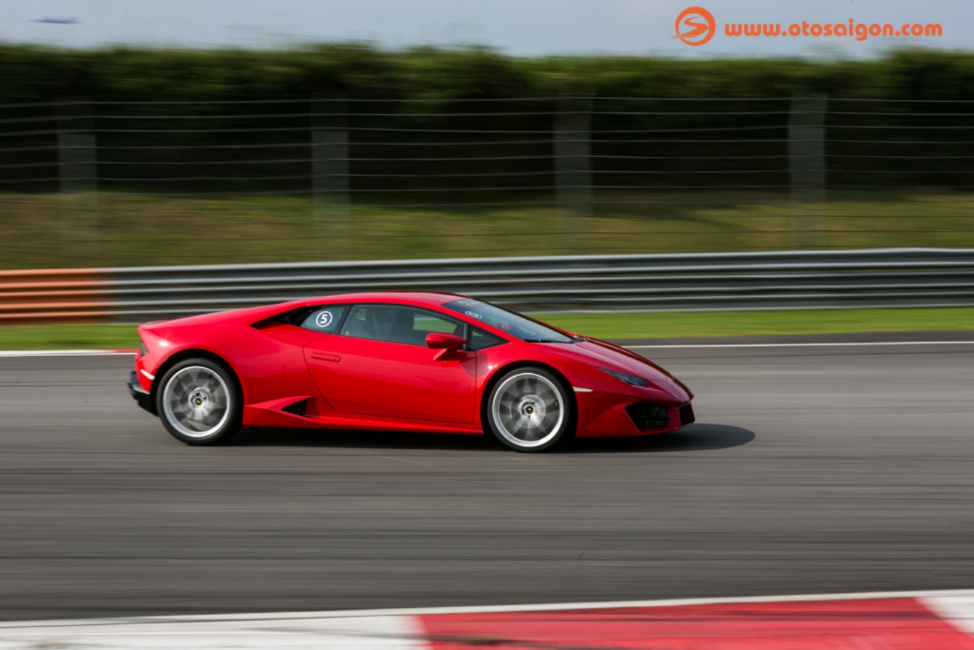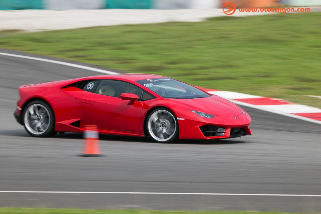 Xe dẫn đường cho những người trải nghiệm lần này cũng là một chiếc Huracan, nhưng sau tay lái của một tay đua chuyên nghiệp. Anh ta sẽ hướng dẫn cho những người lái phía sau các điểm vào cua hợp lý, giúp trải nghiệm thêm an toàn. Lúc này trong đầu em nghĩ rằng khó có thể thoải mái đạp ga sát ván, vì theo kinh nghiệm tham gia những chương trình thử xe có xe hướng dẫn ở phía trước, thường họ sẽ kiềm chế tốc độ ở khoảng an toàn tối đa, khiến cho các cuộc thử xe trở nên “cụt hứng”. Nhưng không, ngay khi thoát khỏi đường pit, chiếc Huracan phía trước nhanh chóng tăng tốc hết ga, xua tan ngay ý nghĩ “lái Bò dạo đường đua” của em. Ngay sau đó em cũng nhanh chóng lấy lại tập trung, đạp ga sát ván đuổi theo chiếc xe phía trước.