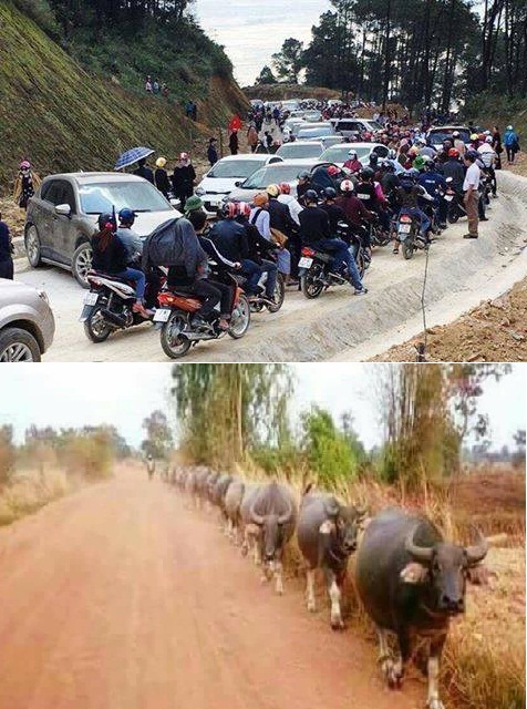 Thậm chí gần đây có cư dân mạng còn so sánh hình ảnh giao thông của Việt Nam với sự giao thông của… đàn trâu!