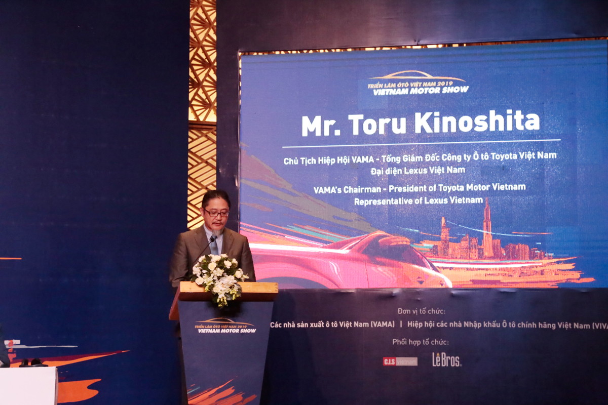 “Trong tương lai, cùng với sự phát triển ổn định của nền kinh tế và gia tăng dân số tại Việt Nam, thị trường ô tô được dự đoán sẽ ngày càng phát triển và Việt Nam sẽ sớm bước vào thời kì xã hội hóa ô tô. Trong xu thế đó, các hãng sẽ phải cố gắng đổi mới, chuyển mình trong mọi mặt để đáp ứng được xu hướng tiêu dùng mới cũng như nhu cầu ngày càng cao và đa dạng của khách hàng, nâng cao chất lượng cuộc sống, đóng góp cho ngành công nghiệp ô tô và xã hội Việt Nam. Chúng tôi hi vọng công chúng, khách hàng và những người yêu xe Việt Nam sẽ đến Vietnam Motor Show 2019 để chiêm ngưỡng những thành quả sáng tạo mới nhất của chúng tôi”, ông Toru Kinoshita, Chủ tịch VAMA, chia sẻ tại buổi họp báo.