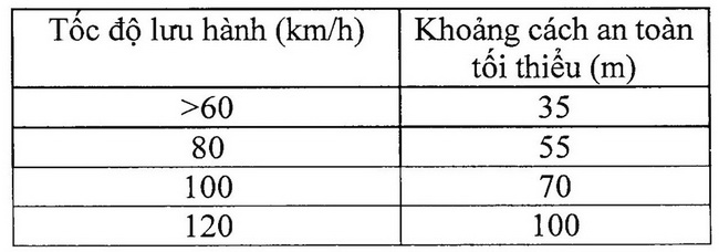 Còn khi đi trong khu vực đô thị, đông dân cư hoặc khi trời có mưa, sương mù, mặt đường trơn trượt, địa hình quanh co, đèo dốc,… người lái xe phải điều chỉnh khoảng cách an toàn thích hợp lớn hơn khoảng cách an toàn ghi trên biển báo hoặc theo như bảng ở trên.