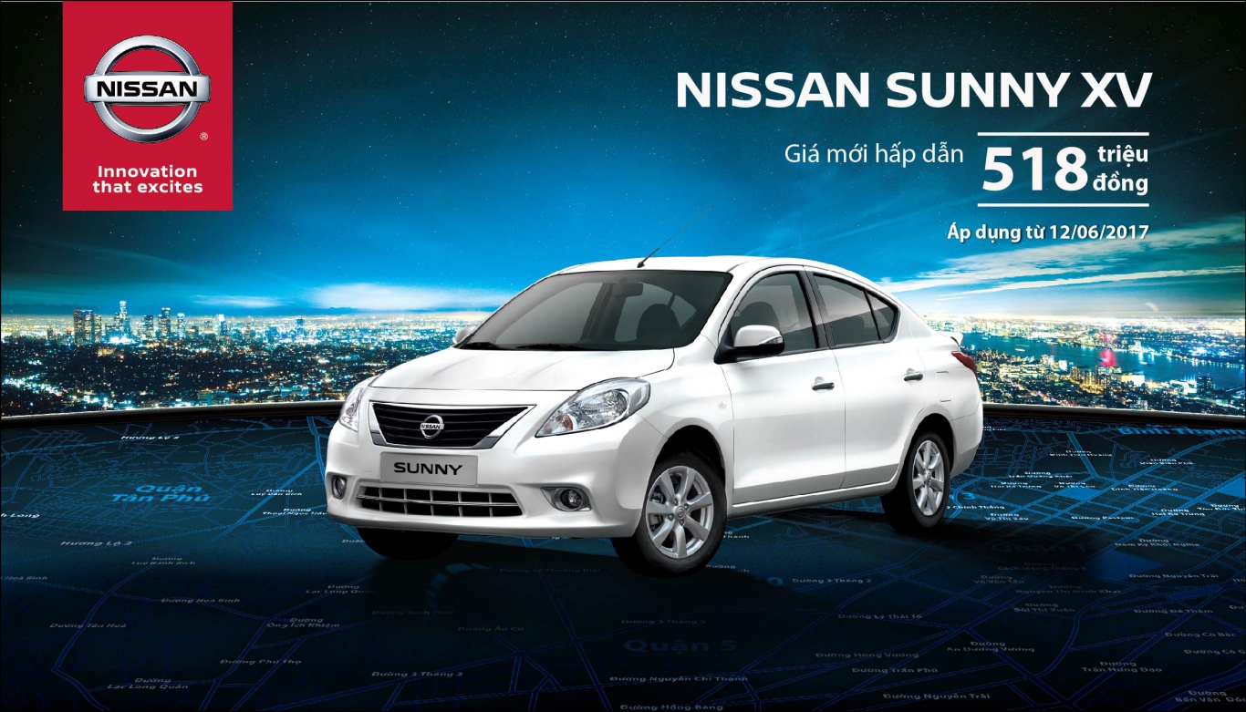 Theo đó, mức giá bán lẻ đề xuất mới cho mẫu sedan Nissan Sunny bản XV là 518 triệu (đã bao gồm thuế VAT) từ ngày 12/06/2017, đồng thời triển khai chương khuyến mãi hấp dẫn dành cho cả 03 phiên bản của mẫu Crossover Nissan X-Trail từ ngày 12/06/2017 đến 30/06/2017. Cụ thể: