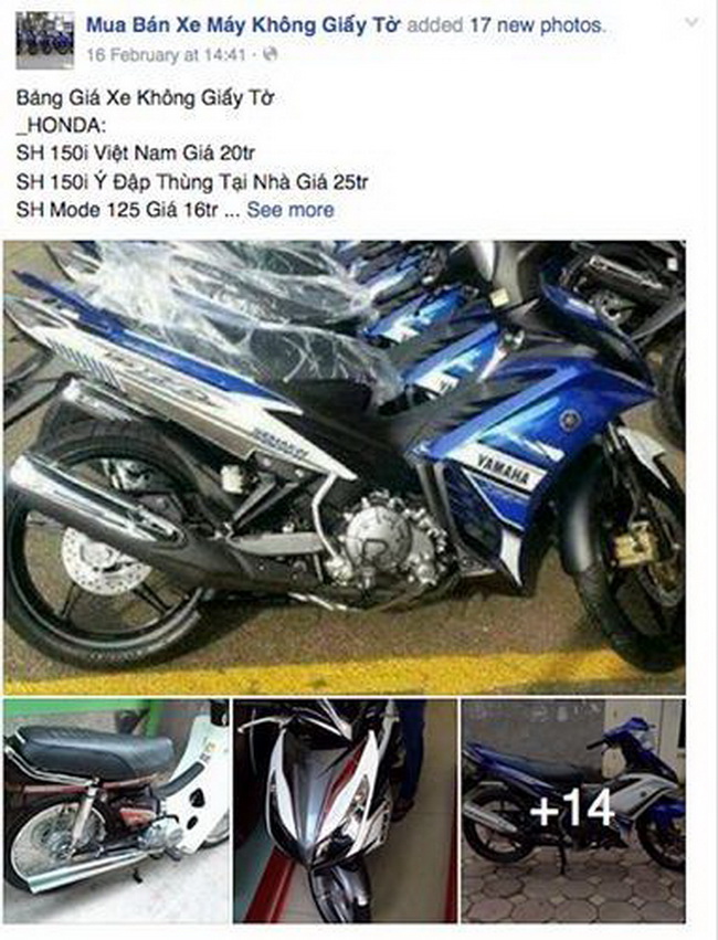 Hiện nay trên Internet và các trang mạng xã hội như Facebook, có rất nhiều đối tượng lừa đảo đã lập ra các trang mua bán xe máy không giấy tờ, xe nhập lậu từ các nước lân cận như Campuchia để lừa tiền đặt cọc của khách hàng.