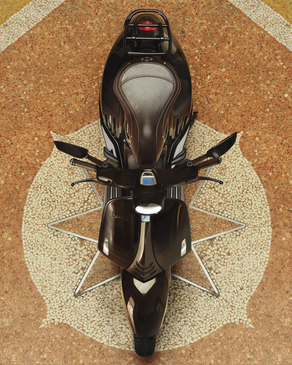 Phiên bản giới hạn này đi kèm bộ phụ kiện được tuyển chọn kỹ lưỡng, bao gồm túi da gắn sau xe sản xuất tại Ý, kính chắn gió với giá đỡ nhôm và mũ bảo hiểm jet mang logo chữ “V” mạ vàng ba chiều ở mặt sau, tạo nên tổng thể đồng bộ và khác biệt.