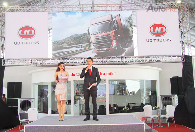 Nhân dịp Triển lãm ô tô Quốc tế, UD Quester với đầu kéo 6 x 4 và 6 x 2, động cơ 8 lít 330HP là đại diện cho một loạt các dòng sản phẩm của UD. Bên cạnh đó, chúng tôi cũng trân trọng giới thiệu chính sách Ưu đãi chỉ duy nhất tại thị trường Việt Nam: 3 năm miễn phí bảo trì và sửa chữa. Trích lời Ông Supriono Madayin, Giám đốc Phụ trách thị trường Việt Nam.