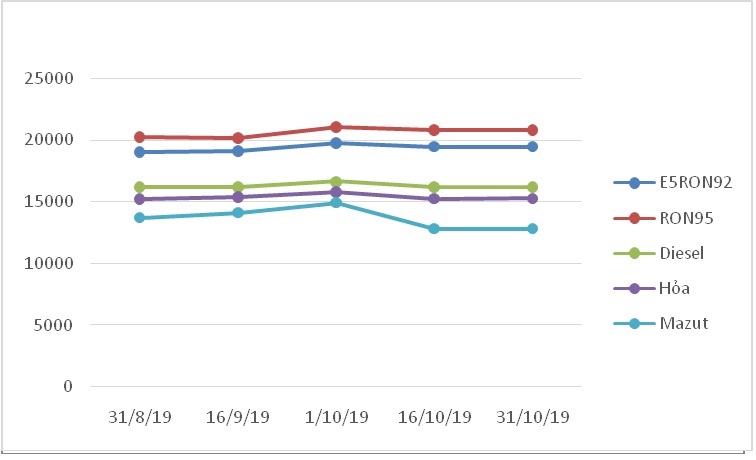 Biến động giá bán lẻ xăng dầu trong nước tháng 8-10/2019