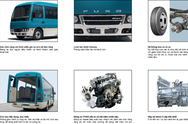 Xe buýt ROSA là sản phẩm đáp ứng mọi kỳ vọng từ phía khách hàng thông qua giá trị cốt lõi đến từ bên trong. FUSO ROSA được trang bị động cơ tăng áp 4D34-2AT4 với 5 cấp số, mô-men xoắn cực đại 370 Nm ngay tại vòng tua thấp 1.600 vòng/phút. Với công suất 136 mã lực bên trong, động cơ diesel 4 xy-lanh, giúp chiếc xe luôn đạt hiệu suất tối ưu, quá trình sang số êm ái tăng khả năng tiết kiệm nhiên liệu. Hội tụ đầy đủ các yếu tố kinh tế, hiệu quả, tiện ích và bền bỉ; xe buýt ROSA là lựa chọn đáng tin cậy dành cho mọi đối tượng khách hàng.