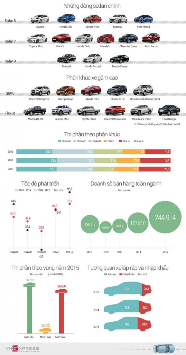 Thứ năm 04/02/2016 18:00 GMT+7Autopress.vn - Autopress- Nếu trước đây, đa phần người dùng sẽ chọn dòng xe sedan thì giờ đây, xu hướng mua xe là những mẫu xe đa dụng, gầm cao. Trong thời gia sắp tới SUV và Pickup sẽ là 2 dòng xe thu hút sự quan tâm của phần lớn người tiêu dùng.